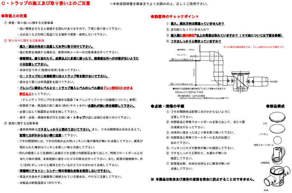 C トラップの施工及び取り扱い上のご注意 Manualzz